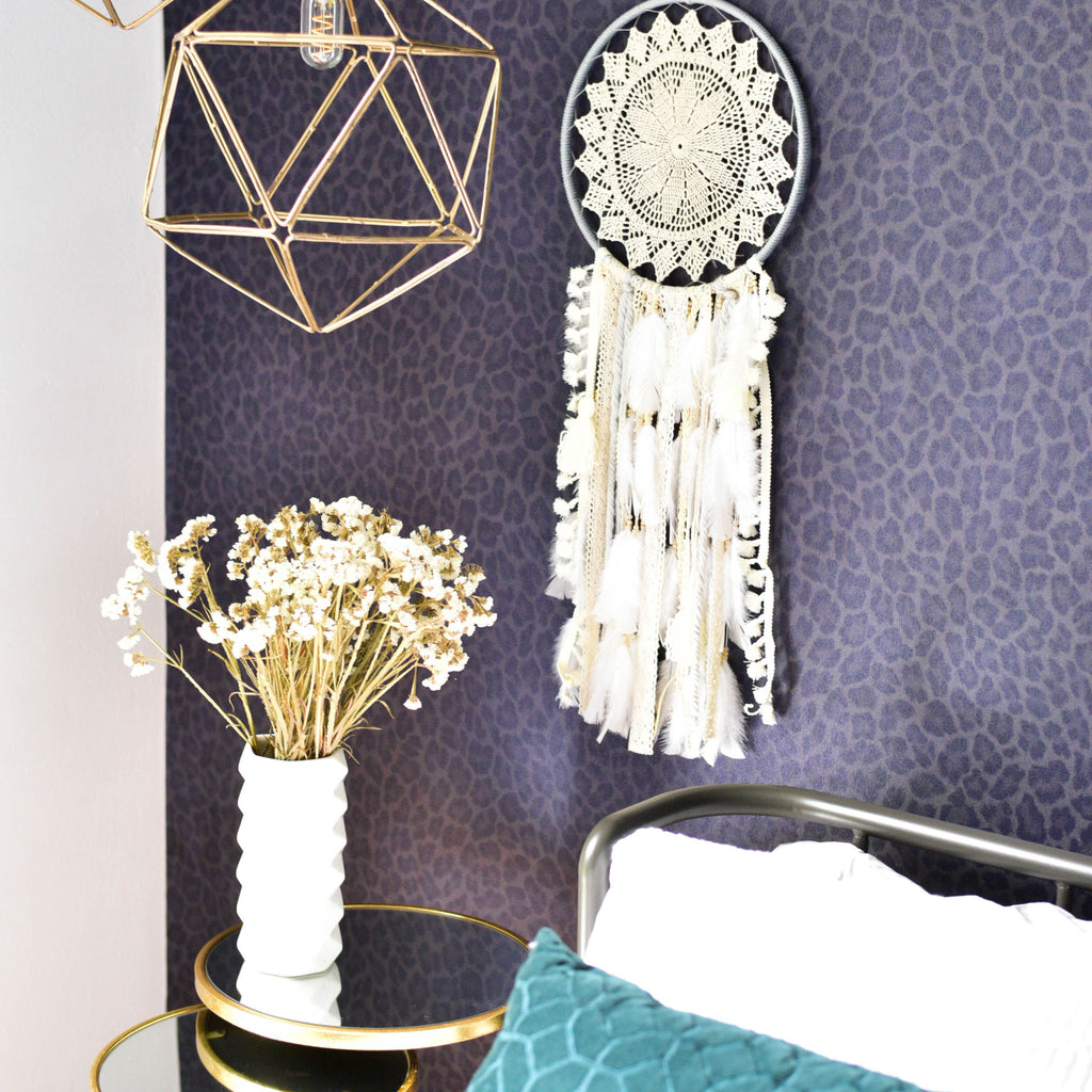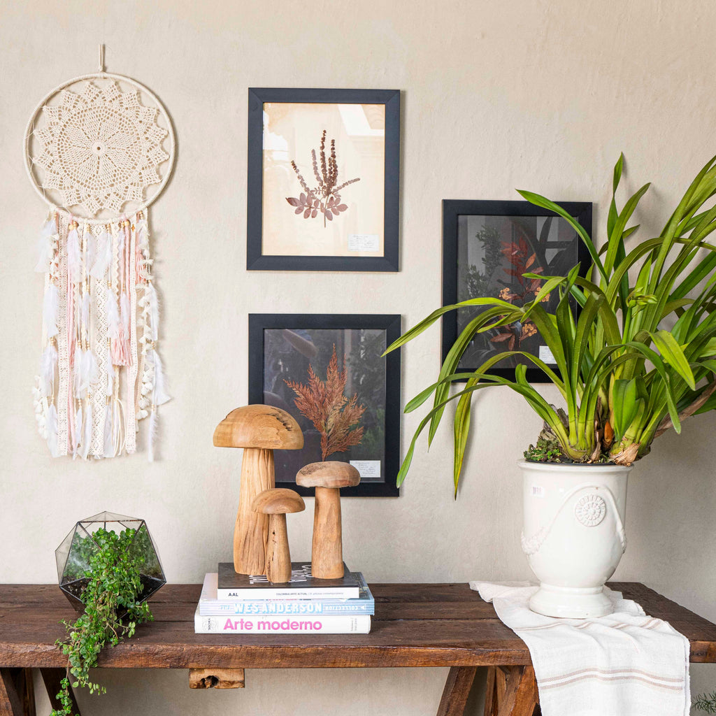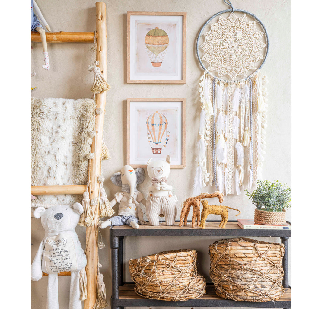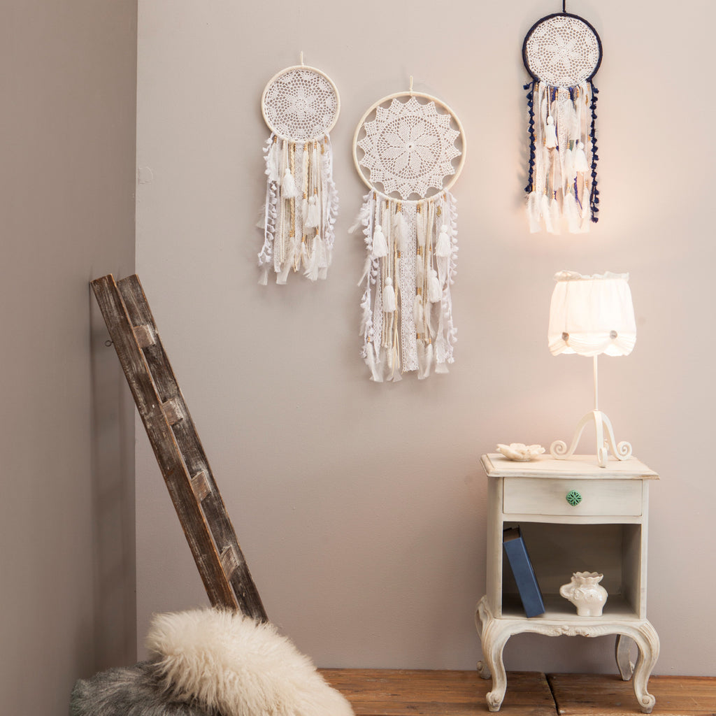 Confeccionado con cuidado artesanal, este atrapasueños presenta un diseño encantador que evoca la tranquilidad y la elegancia. Colócalo en la pared de tu sala de estar o dormitorio para crear un punto focal relajante y encantador en tu espacio.
