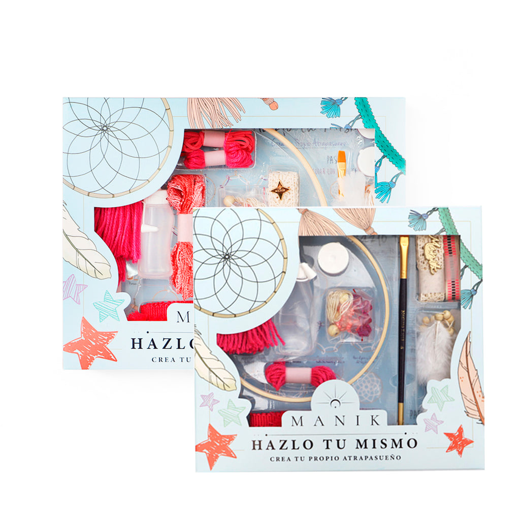 En Manik te damos la posibilidad de fabricar tu propio atrapasueño. Puedes escoger los colores que necesitas para mejorar una situación determinada, sanar una zona específica de tu cuerpo o atraer lo que deseas para ciertas áreas de tu vida. Estudios recientes y disciplinas diversas alrededor del mundo confirman las propiedades físicas y sanadoras que tiene en las personas la realización de trabajos manuales.