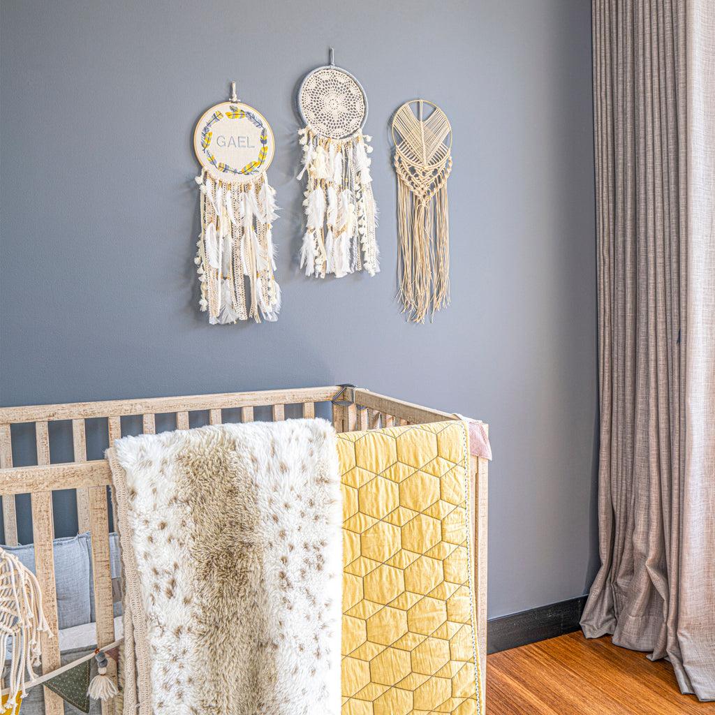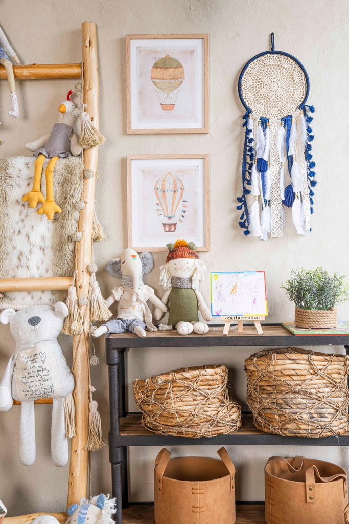 Imagina a tu niño sumergiéndose en noches de sueños inspiradores y aventuras imaginativas. El atrapasueños azul no solo es estéticamente agradable, sino que también emite energías positivas. Colócalo en su espacio favorito y deja que el encanto de este accesorio lo envuelva en una atmósfera de calidez y magia.